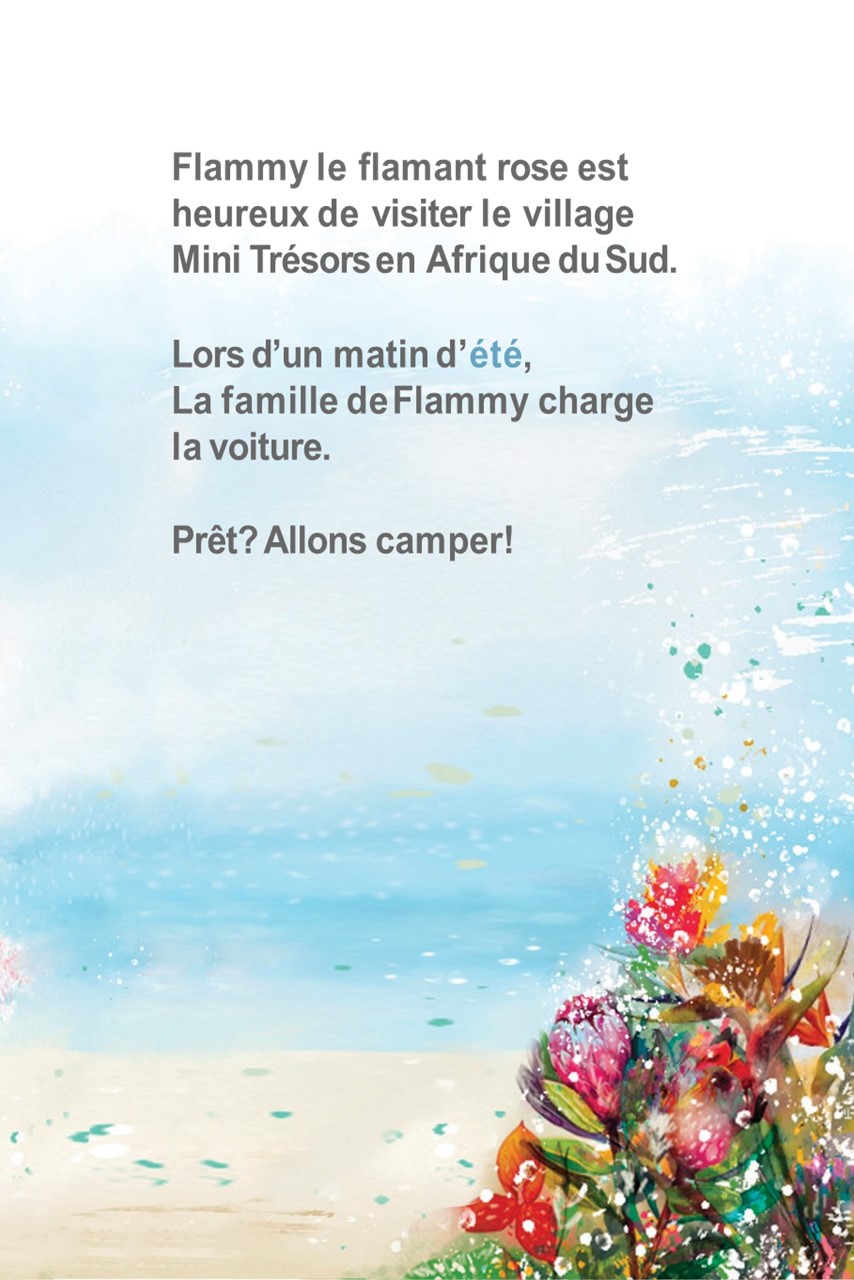 C’est le temps d'aller camping en Afrique du Sud et Flammy le flamant rose est excité! Fera-t-il de nouveaux amis? Allons le découvrir! Ce livre est axé sur: